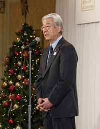 Soon after Her Imperial Highness Hisako Takamodo arrived we were ready to get underway. At 7:00 as the main host, I delivered the opening remarks to get us started. The manager of Nisshin Seifun Group Inc. Mr. Toshiya Tago emceed for the ceremony and remarks from the hosts and guests are introduced in the following video clips.