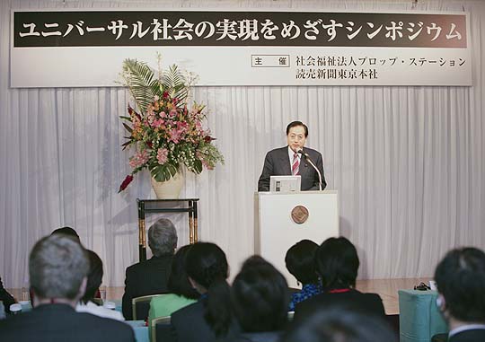 (Hatoyama) Thank you very much. I think I have to leave in the midst of the presentation by Ms. Dinah Cohen. And I was worried about it. This was a very good remark by Takenaka-san. So I am very happy to be given this opportunity to speak in front of you at this point on behalf of the democratic party of Japan. And so, first and foremost, we have to realize that this is a symposium for the realization of a universal society. So we have to have this kind of bi-partisanship here in order to make sure that everybody in the society will make a contribution in this area, and I think it is quite natural to do that.