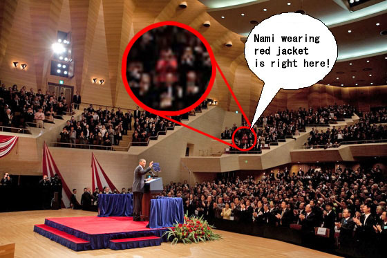 Well, President Obama in person definitely had a powerful aura. All of you know his humorous joke saying on his speech, “Some of you may be aware that when I was a young boy, my mother brought me to Kamakura, where I looked up at that centuries-old symbol of peace and tranquility -- the great bronze Amida Buddha (Great Buddha). And as a child, I was more focused on the matcha (powdered green tea) ice cream.”