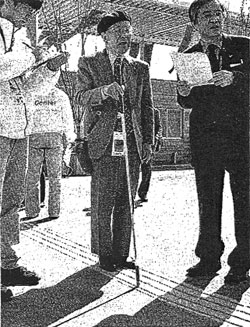 愛知万博(愛・地球博)の瀬戸会場で13日、障害者や外国人観光客が自由に行動することの援助となる「自律移動支援プロジェクト」の実験が公開され、視覚障害者4人が参加した。