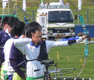 少年男子90メートルの試合です。観客席にも緊張が伝わってきます。 デジカメの倍率が低いため、ギリギリまで近づいての撮影です。叱られないかしら、こちらも緊張しています。 (つぶやき:もっとちゃんとしたデジカメだったら取材も楽なのに、あっ電池が切れそうだ!!) |