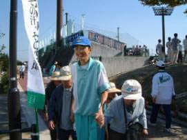 この大会では、すっかりおなじみになった 多くのボランティアの皆さん。 この笑顔に支えられての大会です。 お年寄りに優しく案内の手を差し伸べる この青年の溢れる笑顔に平和の一旦を 見たような気がします。 グランドの外で発見した 「ファインプレー」ですが 決して特別な光景であってはなりません。 |