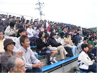 たくさんのお客さんが、手にあせを握りながら応援していたようです。