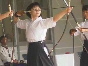 遠的競技は的までの距離が近的の28mに対して60mあります。的は直径100cmで近的とは異なり場所により点数が決められているので、的の中心に近くなるほど点が高くなります。 |