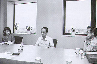 MSの建物は思った通り、最新のしゃれたビル。空間をぜいたくに使った設計だ。たとえば、取材をした7階はエレベーターを降りると、南側には採光充分の広い廊下がある。エレベーター横の廊下の中央には随分立派な生花が活けてある。「アメニティ空間」と呼ぶにふさわしい余裕が感じられる。しかし、デザイナーによって計算され尽くされた感じの気持ち悪さがないともいえない。