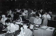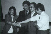 その後、成毛氏と細田和也さんによる対談(詳しくは下段参照)、第2部ではプロップ・ステーションの活動紹介および障害者の在宅就労事例、通産省や郵政省、自治省の人を交えて、NPOのあり方などについて討議された。障害者が単独で企業にアプローチするよりも、支援組織を活用したほうがはるかにやりやすくなる。ただ、支援組織がスムーズに障害者を支援できるようにするためにも、NPOという組織形態をもう少し社会的に認知される必要がある。そのための法制度の改正についての意見などが述べられた。民間、行政、研究機関とさまざまな人から意見が寄せられたことにも、大きな意味があったと言える。