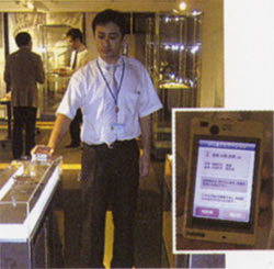 手には「ユビキタス・コミュニケーター」と呼ぶ通信端末を持ち、ucodeのポイントでコンテクスト(状況)情報を伝える |