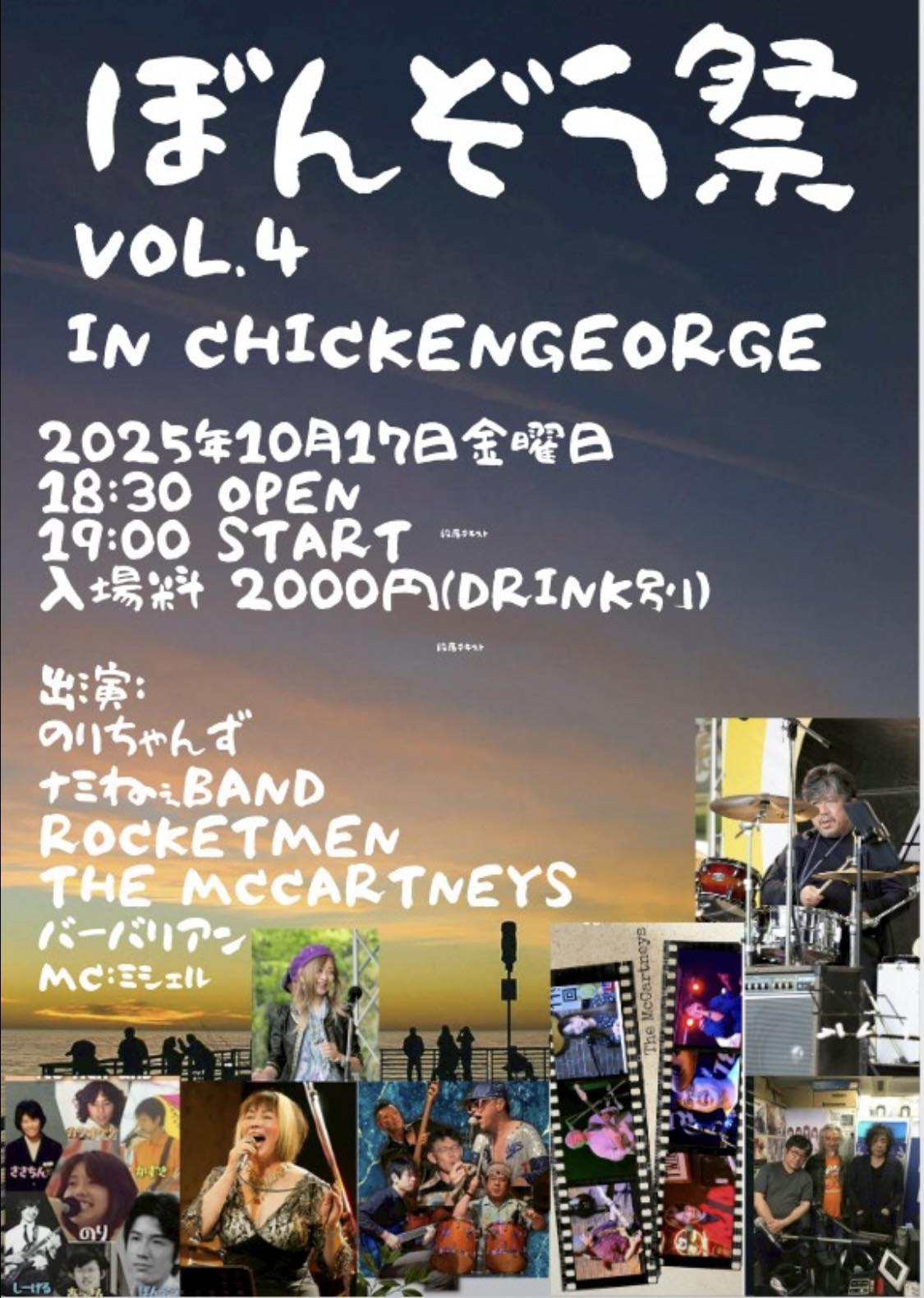 10月17日(金)、神戸チキンジョージで開催される「ぼんぞう祭り」に、ナミねぇBANDとして出演します。
