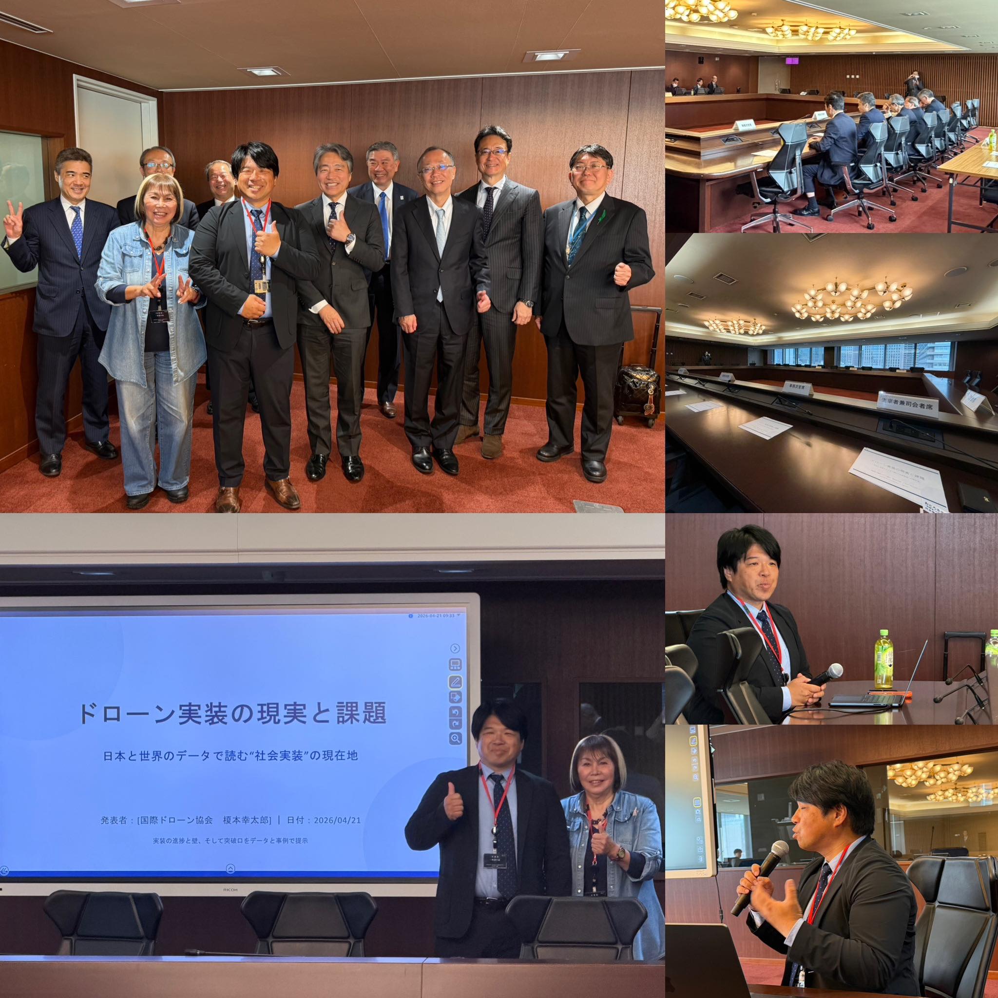 4月21日火曜日は、朝から外務省国際会議室において、恒例の「ユニバーサル次官PJ(勉強会)」を開催しました。講師は、足でドローンを操縦する宮崎みゆうさんを、最年少で一等国家資格取得に導いて下さった、国際ドローン協会代表理事の、榎本幸太郎さんです。