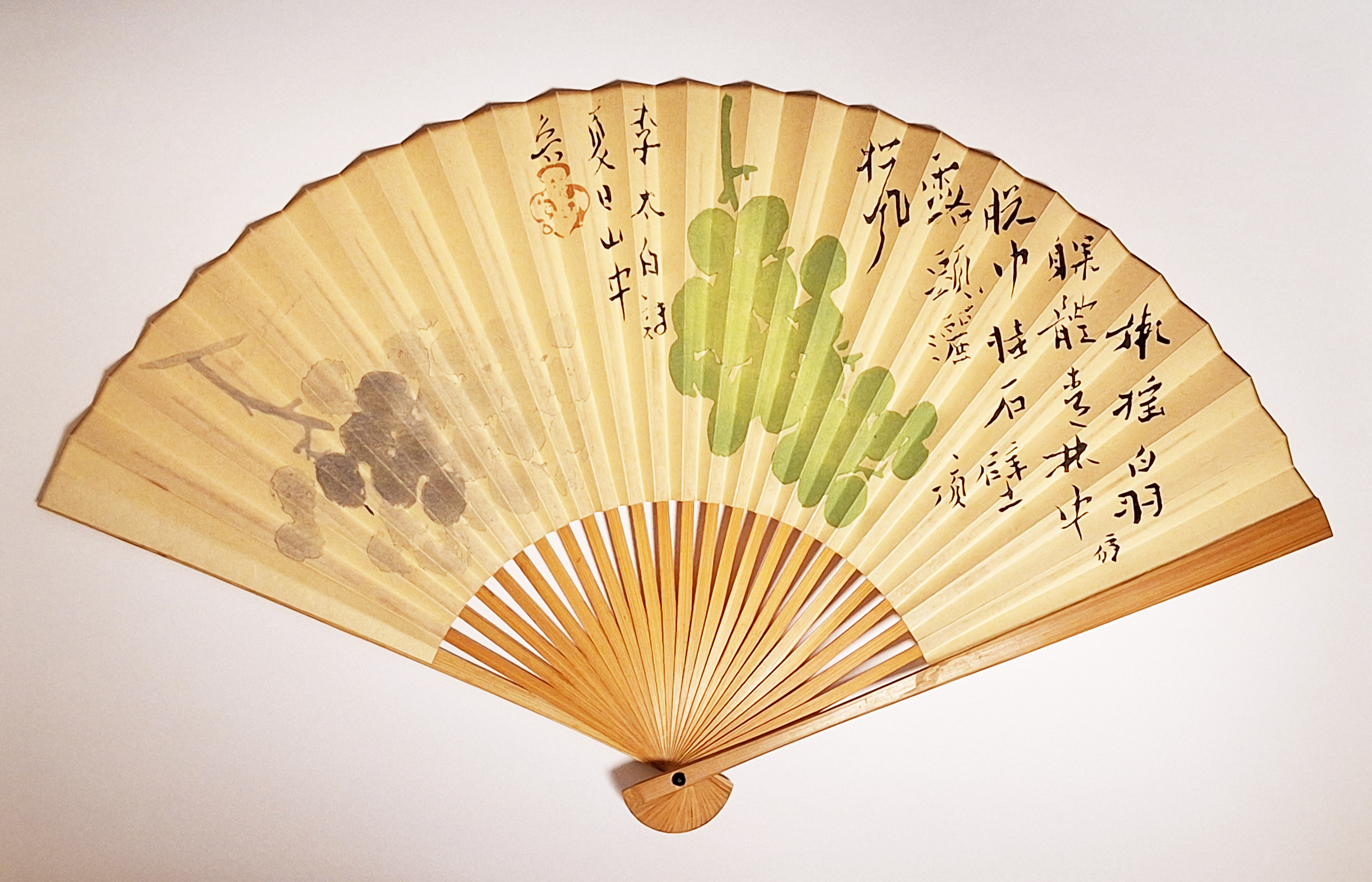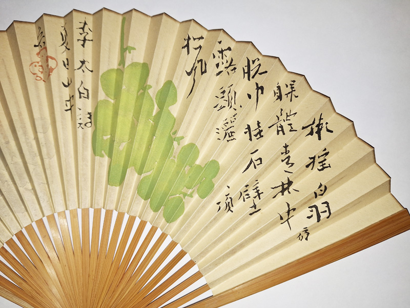 懶搖白羽扇 裸袒青林中 脱巾掛石壁 露頂灑松風